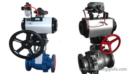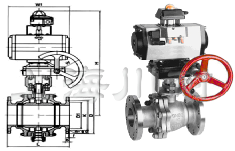 Q641Y帶手動氣動硬密封球閥廣泛應用于化工、石油、制藥、輕工等行業的自動控制。采用V型通道球體結構與電子式電動執行器配套可實現流量的調節。手輪機構底面和閥門連接,支架面與氣缸連接,閥軸與蝸輪內孔配合穿過,閥軸端四方與氣缸方孔配合。氣動時,氣缸帶動閥軸、蝸輪同轉。手動時,蝸桿與蝸輪齒合,帶動閥軸轉動,氣缸活塞隨時。